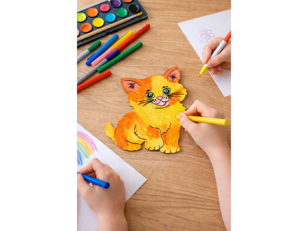 🎨 Tvořivá zábava: nechte děti koťátko malovat barvami nebo zdobit podle svého