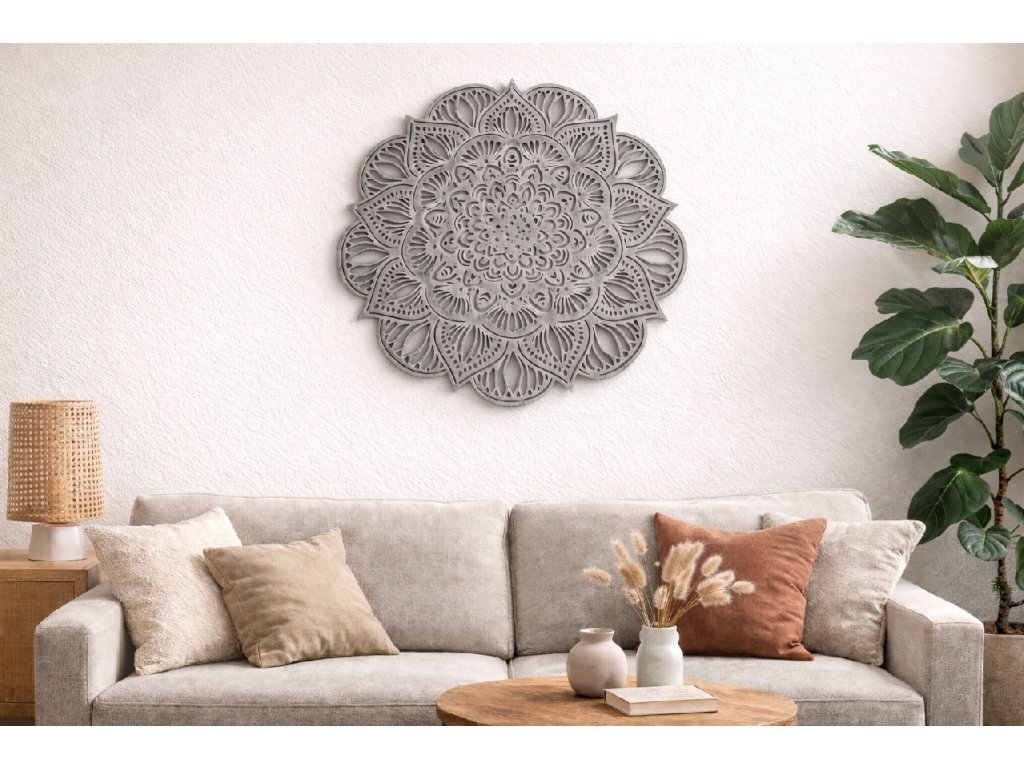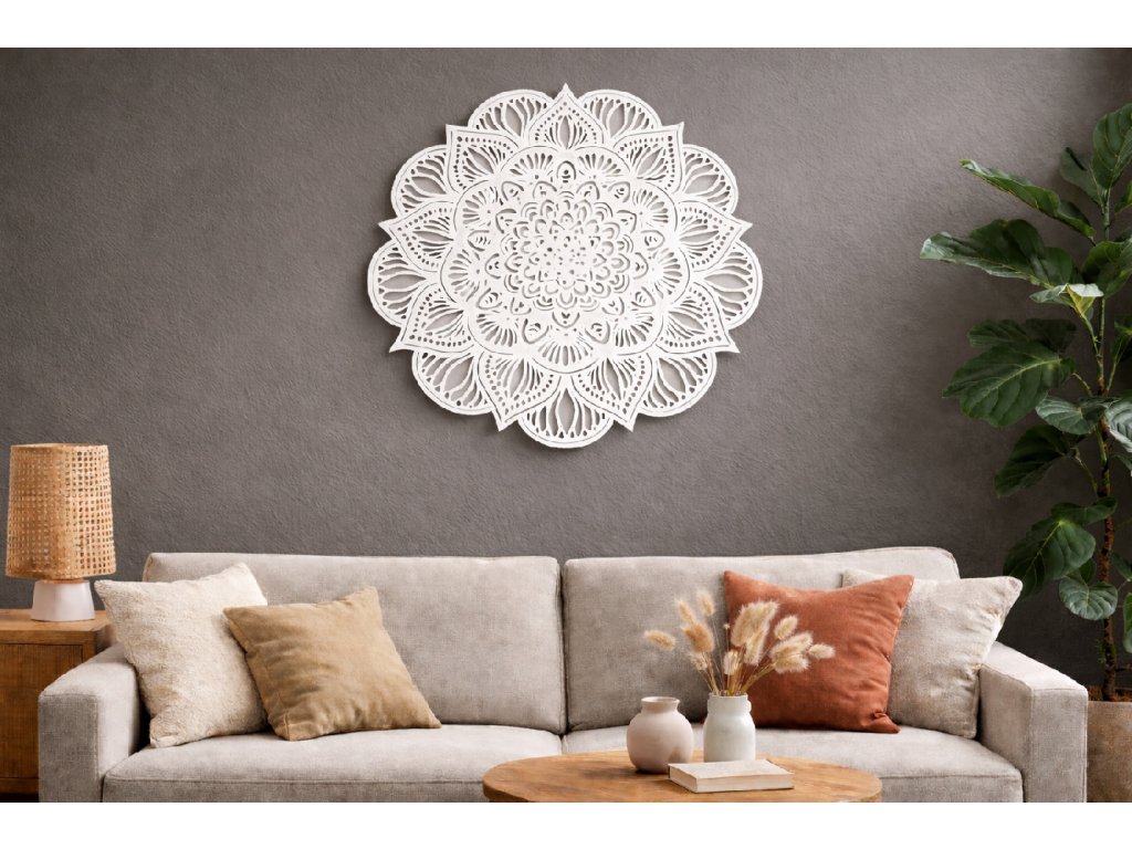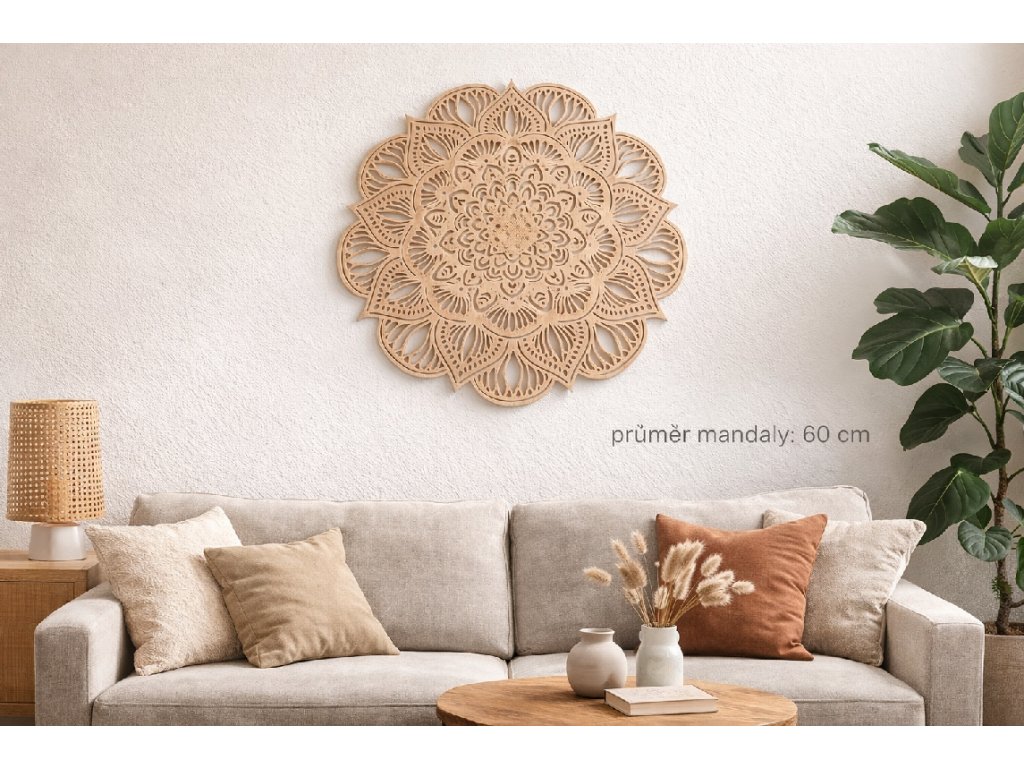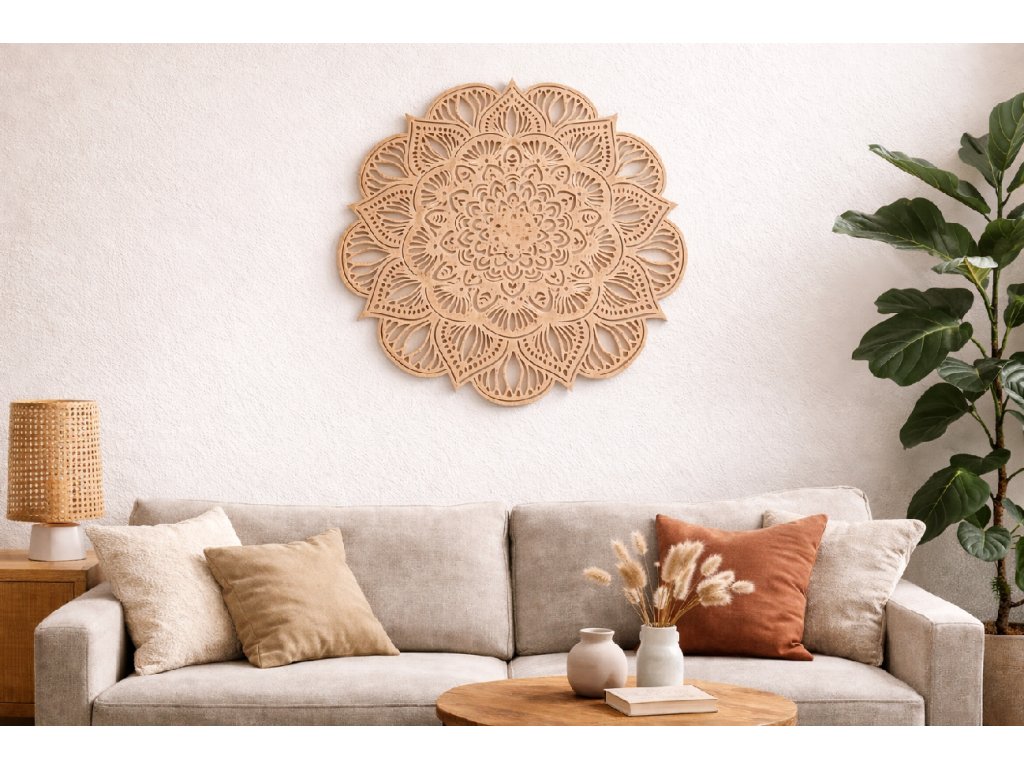 Mandala na zeď je krásná dřevěná dekorace, která vnese do vašeho interiéru klid, harmonii a jedinečný vizuální prvek. Precizně vyřezaný geometrický motiv působí esteticky a elegantně, takže ozdobí jak moderní, tak i přírodní styl bydlení.