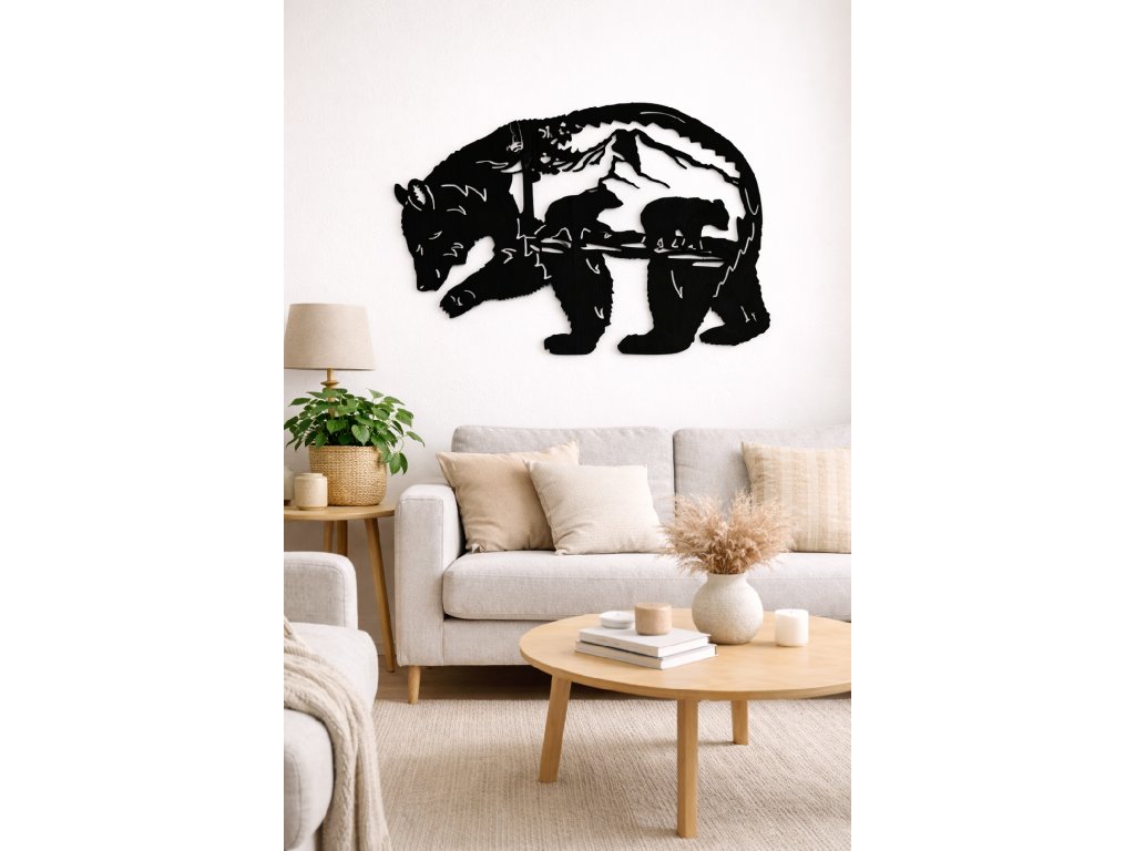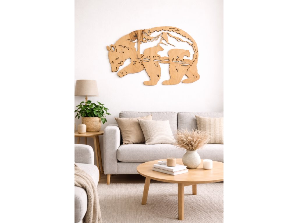 Medvěd je symbolem síly, stability a ochrany. Tento vyřezávaný dřevěný obraz přináší do interiéru výrazný přírodní prvek, který působí klidně, ale zároveň dominantně.